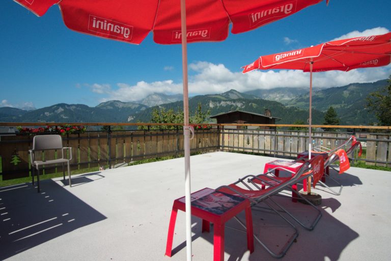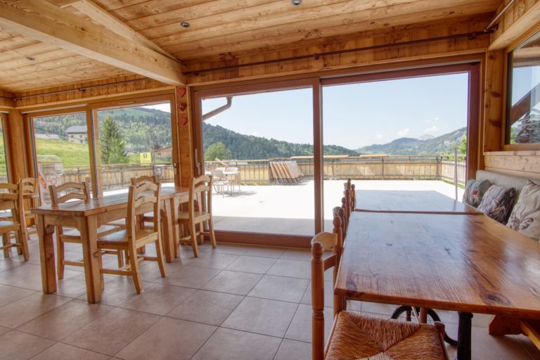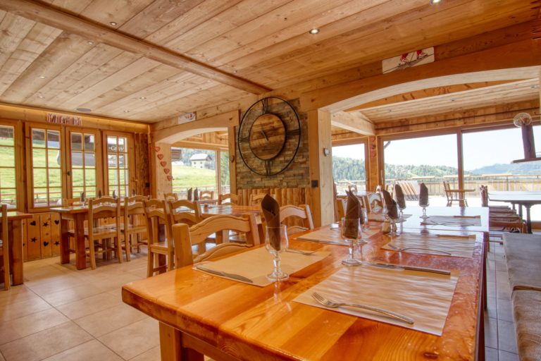Notre terrasse ensoleillée dispose d’une vue dégagée sur la chaine des Aravis et le départ des pistes de l’espace Diamant. Elle offre un espace de restauration de 120 couverts, un espace lounge idéal pour l’apéritif entre amis et un solarium.